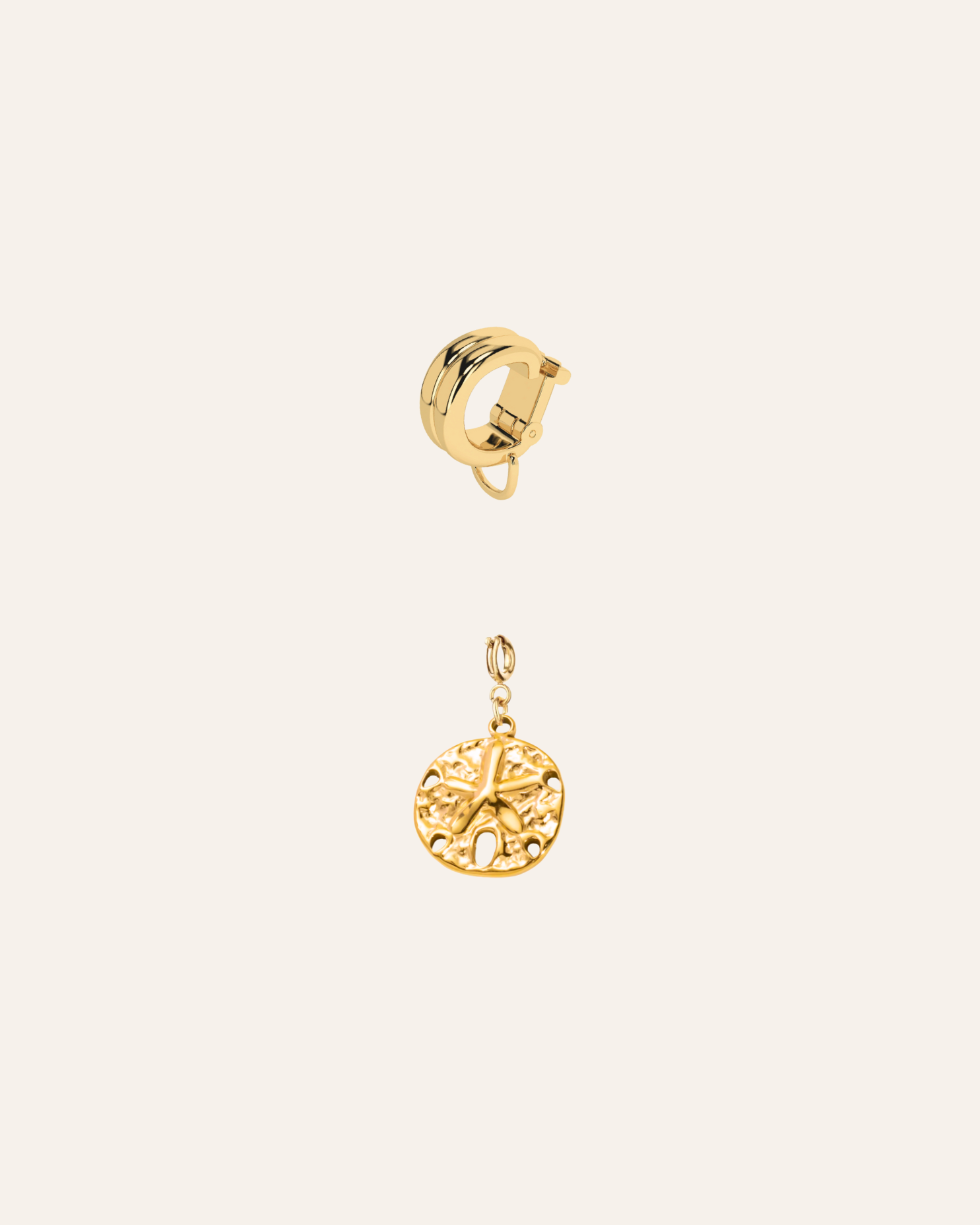 Turn heads this summer with our Golden Sand Dollar 2-Piece luxe bikini jewelry set - designed for lounging by the pool or catching waves at the beach. This 2-piece 14K gold-plated charm set instantly elevates any swimsuit, beach outfit, or vacation look. Built to shine under the sun and survive the sea.